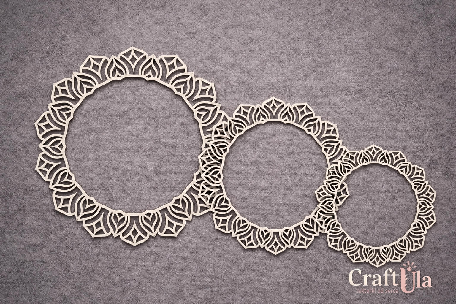 Wymiar mała: ok: 9 cm, średnia: ok. 12 cm, duża ok. 14 cm.